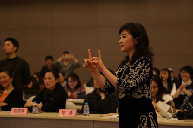 本次讲座形式丰富,采用访谈、教学和互动的形式举行,访谈环节中探讨了方亚芬团长在认识、学习和传承越剧中的心路历程,她分享了自己在童年成长过程中如何结缘越剧,在学习越剧过程中如何克服困难,在传承文化过程中如何教授学生,情感层层递进,为师生们带来了一次很好的文化教育和感恩教育,最后方亚芬女士以演唱《西厢记-琴心》结尾,获得了观众们的热烈掌声。