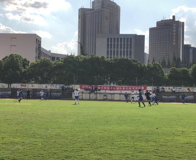 9月8日下午,江南大学女子足球队一行28人来到我校延安路校区,与校超级组女子足球队进行交流比赛。
