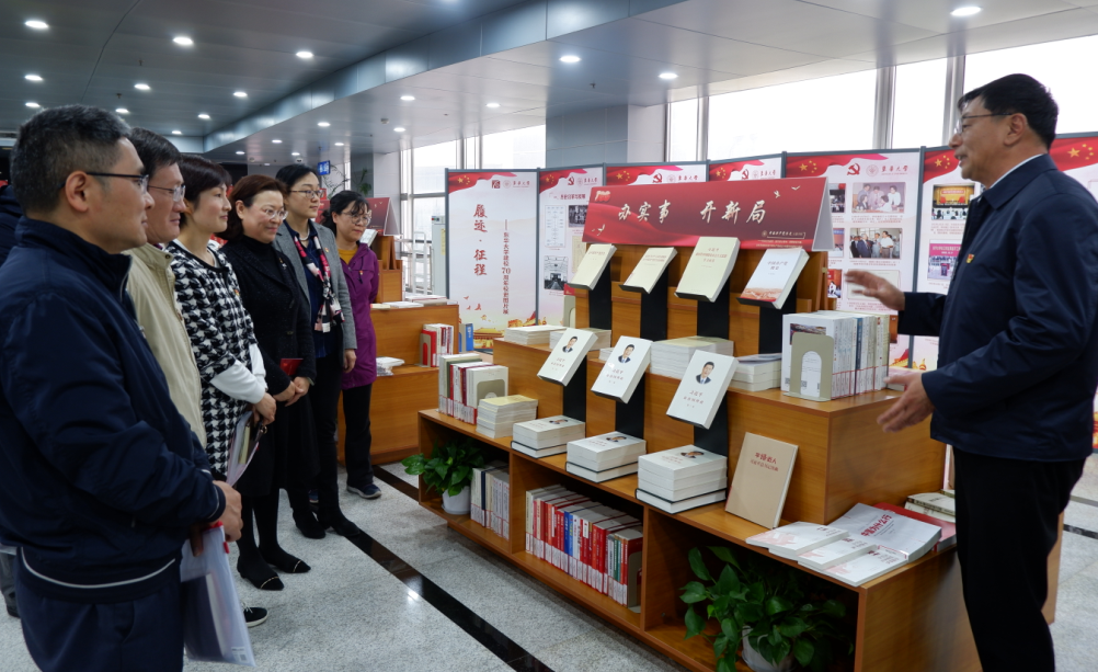 本次党史主题书展按照新民主主义革命篇、社会主义革命和建设篇、改革开放和社会主义现代化建设篇、中国特色社会主义新时代篇四部分列展,共展出了《论中国共产党历史》《毛泽东 邓小平 江泽民 胡锦涛关于中国共产党历史论述摘编》《习近平新时代中国特色社会主义思想学习问答》《中国共产党简史》等1107种共计2256册党史著作以及912种党史电子图书。校史图片展以“履迹·征程”为主题,分为“历史沿革与发展”“教学与科研”“交流与合作”“校园文化”四大板块,展出反映学校各领域重要事件、重大活动和主要成果的113张代表性历史图片,浓缩展现了建校70年来的奋斗历程与红色印迹。