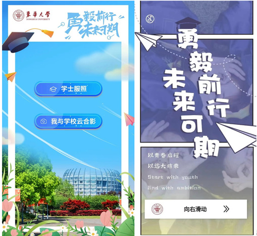 毕业典礼上满载爱与力量的视频和创意照让无数学子莞尔又泪目。学校为毕业生制作了视频《奔赴未来》及专属“云合影”,定格与同窗师长的珍贵东华记忆,纪念同学们在东华留下的足迹,祝愿大家奔赴美好的未来。各学院精心策划组织,用心用情,学位授予仪式以“云拨穗”形式,让毕业典礼线上会场隆重又温馨。今年的毕业季特殊而难忘,学校开展“勇毅前行,未来可期”毕业季校园文化活动,先后推出2022届优秀毕业学子展、就业之星宣讲会、毕业生专属纪念册和毕业晚会等,为毕业生送上母校最诚挚的祝福。