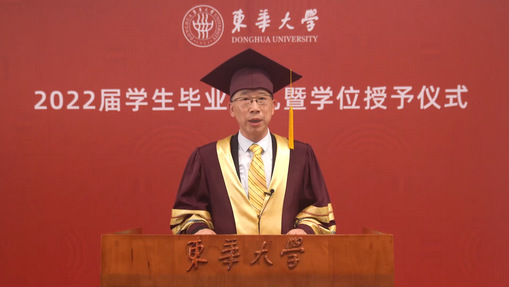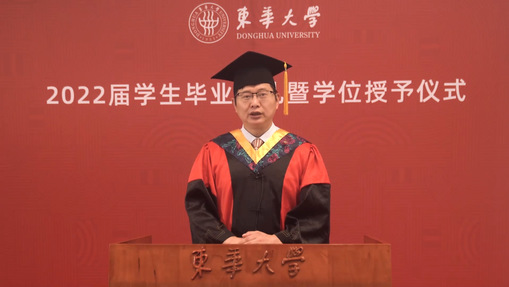 亲爱的同学们,六月的上海,栀子花开,毕业的骊歌再次响起。我们告别在鲜花怒放的盛夏,也许今天这场云上典礼因没有现场拨穗而显得不够完美,但它承载的祝福与期盼依旧。此去经年,希望大家记住这个春天的温暖与感动,带着东华给予你的涵养、学识、修为和品格,牢记国家赋予我们青年一代的使命和责任,勇敢去拼,放心追梦!