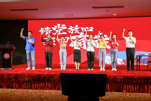会上,我校“学习进行时”理论宣讲团结合学校的校史、体育史带来饱含深情的“思政大课”——《跨越时空,在青春的赛道上奋力奔跑》。9位主讲人通过一场跨越时空的对话,表达了东华学子立志民族复兴,不负韶华、不负时代、不负人民,追逐理想,在青春的赛道上奋力奔跑,争做时代新人的坚定信心,也由此拉开了中国大学生体育协会手球分会“请党放心、强国有我”主题活动的序幕。